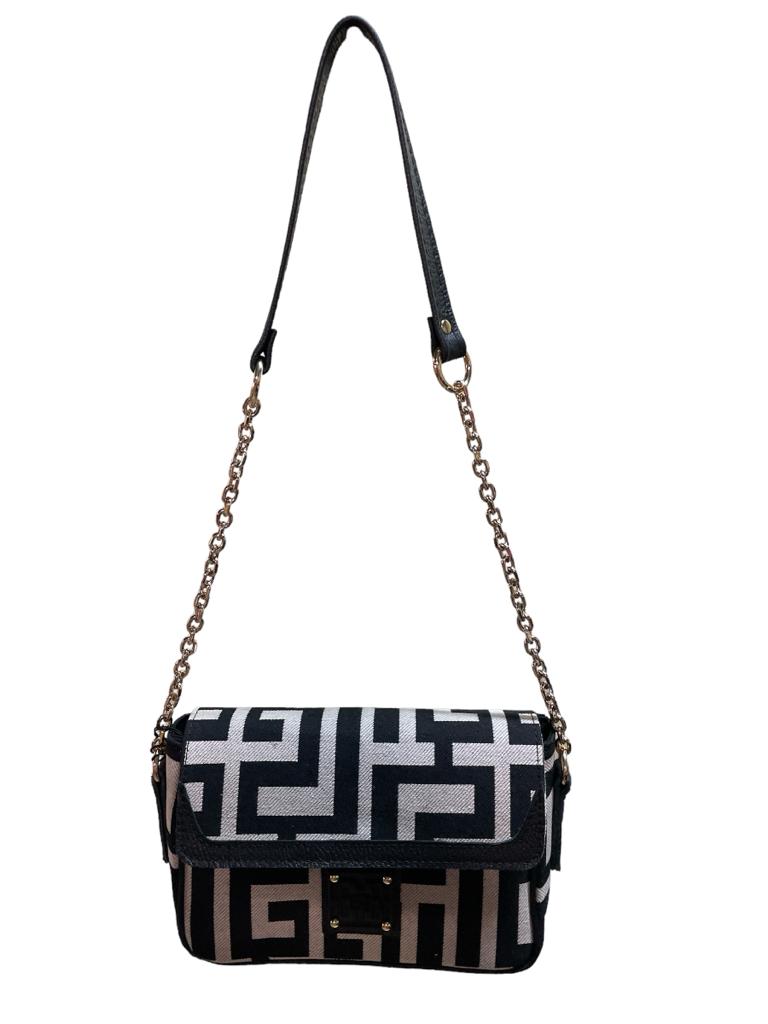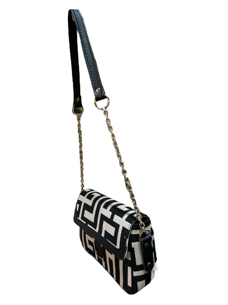 Ανακαλύψτε την Eris, μια εκλεπτυσμένη τσάντα ώμου με μοναδικό σχέδιο λαβύρινθου σε μπεζ και μαύρο χρώμα. Κατασκευασμένη στην Ελλάδα με μεράκι και επιδεξιότητα, συνδυάζει εξαιρετικό στιλ, υψηλής ποιότητας υλικά και λειτουργικότητα.