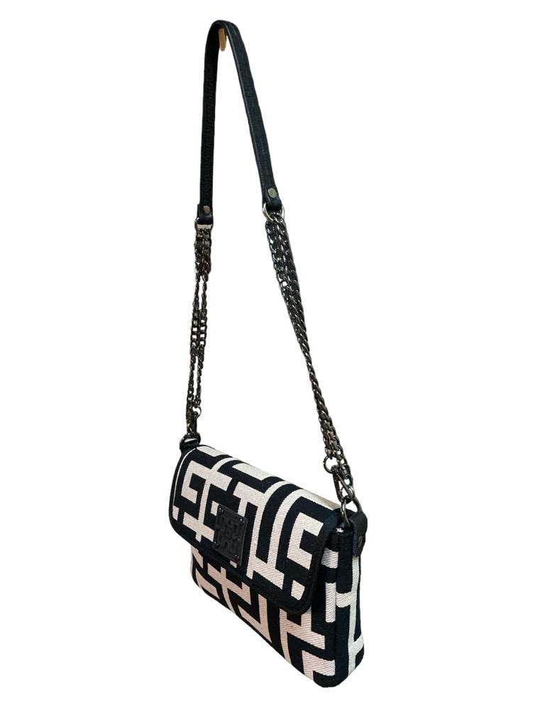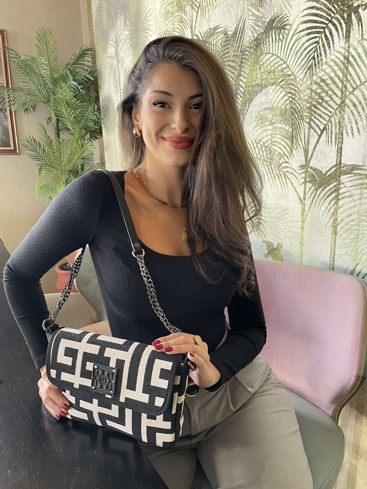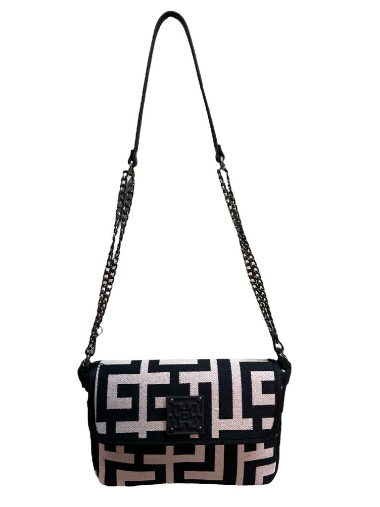 Ανακαλύψτε την Ioni, μία μοναδική τσάντα ώμου με εκλεπτυσμένες λεπτομέρειες από γνήσιο δέρμα και χειροποίητο σχέδιο λαβύρινθου σε κομψό μπεζ-μαύρο χρώμα. Συνδυάζει άριστη ποιότητα, άνεση και στιλ, καθώς διαθέτει ιδανικές διαστάσεις (25 x 4 x 17 εκ.), κατασκευάζεται στην Ελλάδα από έμπειρους τεχνίτες και είναι διαθέσιμη σε εξαιρετική τιμή.