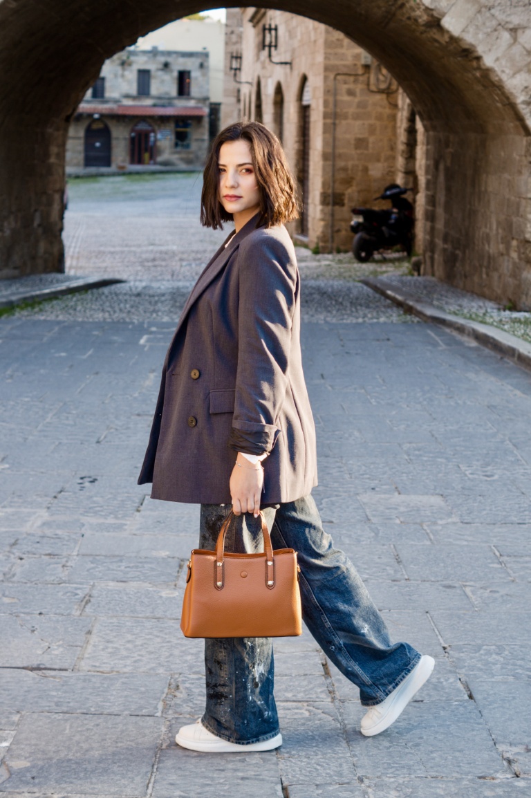 Η τσάντα χειρός Julie αποτελεί μια εκλεπτυσμένη επιλογή που διακρίνεται για την ποιότητα και την ανθεκτικότητά της. Κατασκευασμένη από υψηλής ποιότητας δέρμα, η τσάντα αυτή διαθέτει στιβαρές λεπτομέρειες και χειρολαβές που ενισχύουν την αξιοπιστία και την αντοχή της.