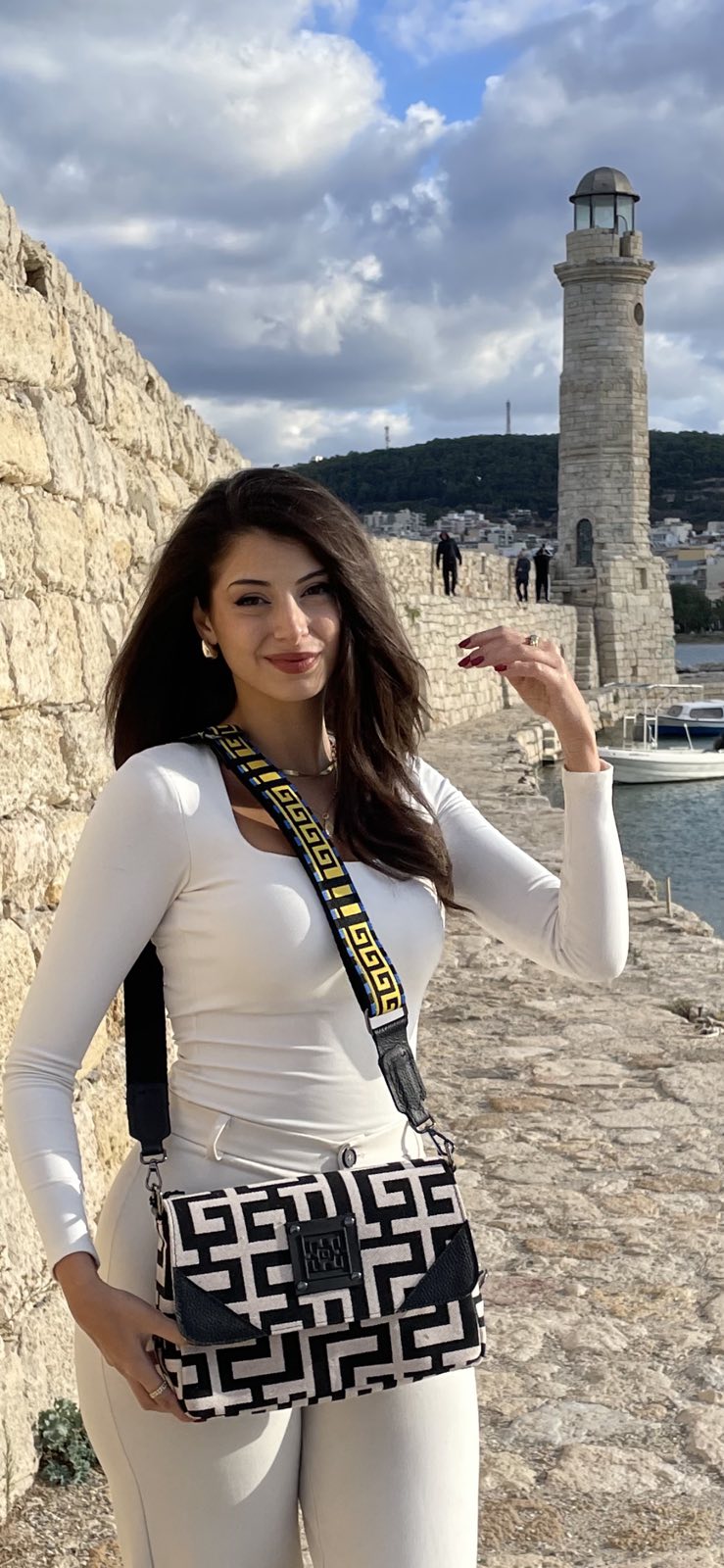 Ανακαλύψτε την Phivos, μια μοναδική τσάντα με σχέδιο λαβύρινθο. Κατασκευασμένη με λεπτομέρειες από γνήσιο δέρμα και χειροποίητη στην Ελλάδα, αυτή η τσάντα θα σας συνοδεύσει σε κάθε σας περιπέτεια. Με διαστάσεις 30 x 21 x 9 εκατοστά, έχει αρκετό χώρο για να χωρέσει όλα τα απαραίτητα.