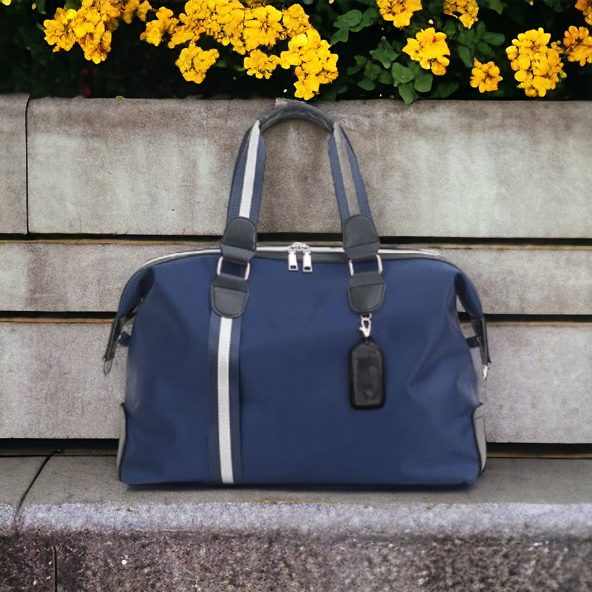Η τσάντα ταξιδίου Tommie αντιπροσωπεύει μια εκλεπτυσμένη επιλογή σε έντονο μπλε χρώμα με λευκές και μπλε λωρίδες, δίνοντας έμφαση στο στυλ και τη λειτουργικότητα. Οι πολλαπλές τσέπες της είναι ιδανικές για την οργάνωση και αποθήκευση των αντικειμένων σας κατά τη διάρκεια του ταξιδιού σας.